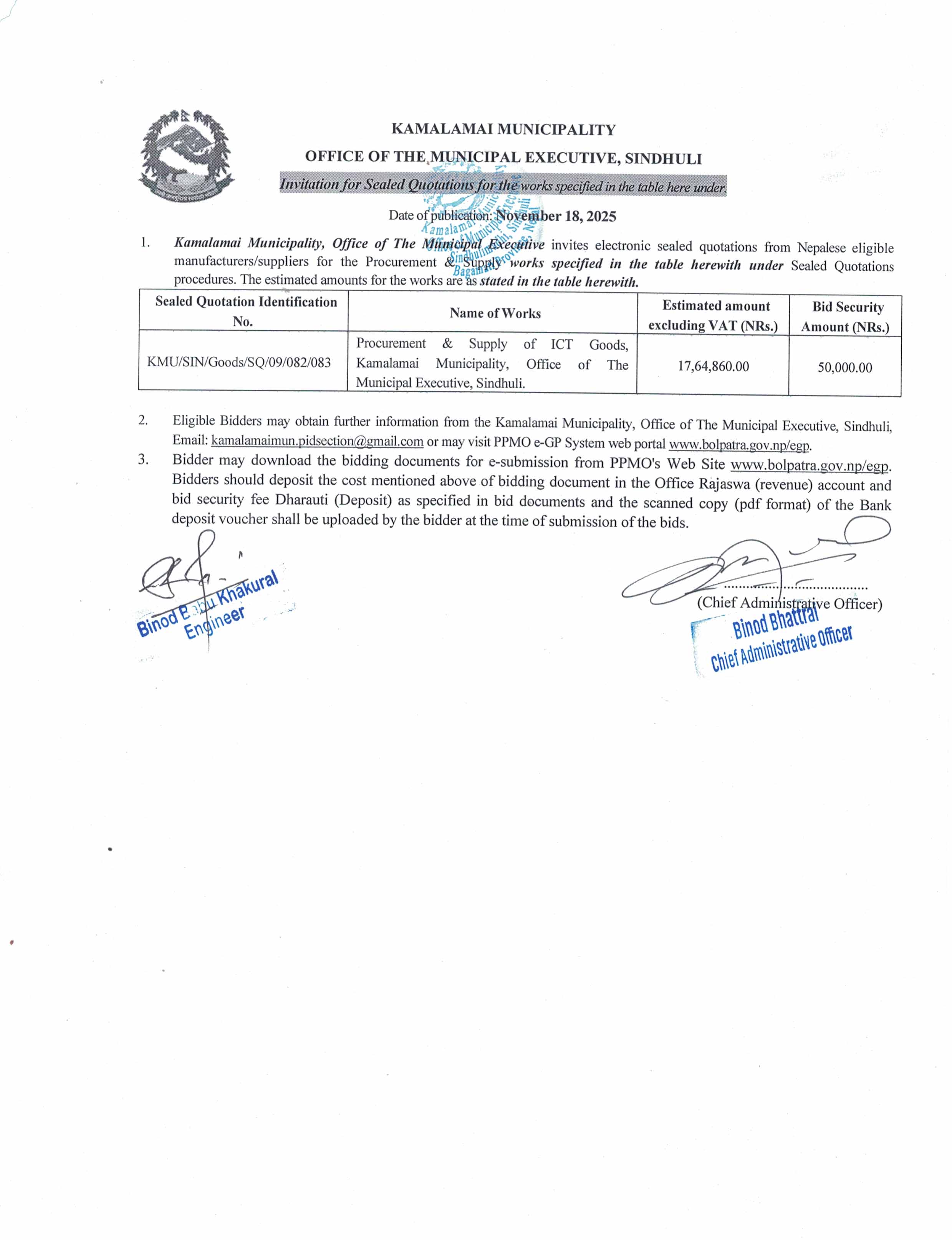 बोलपत्र आव्हान सम्बन्धी सूचना ।