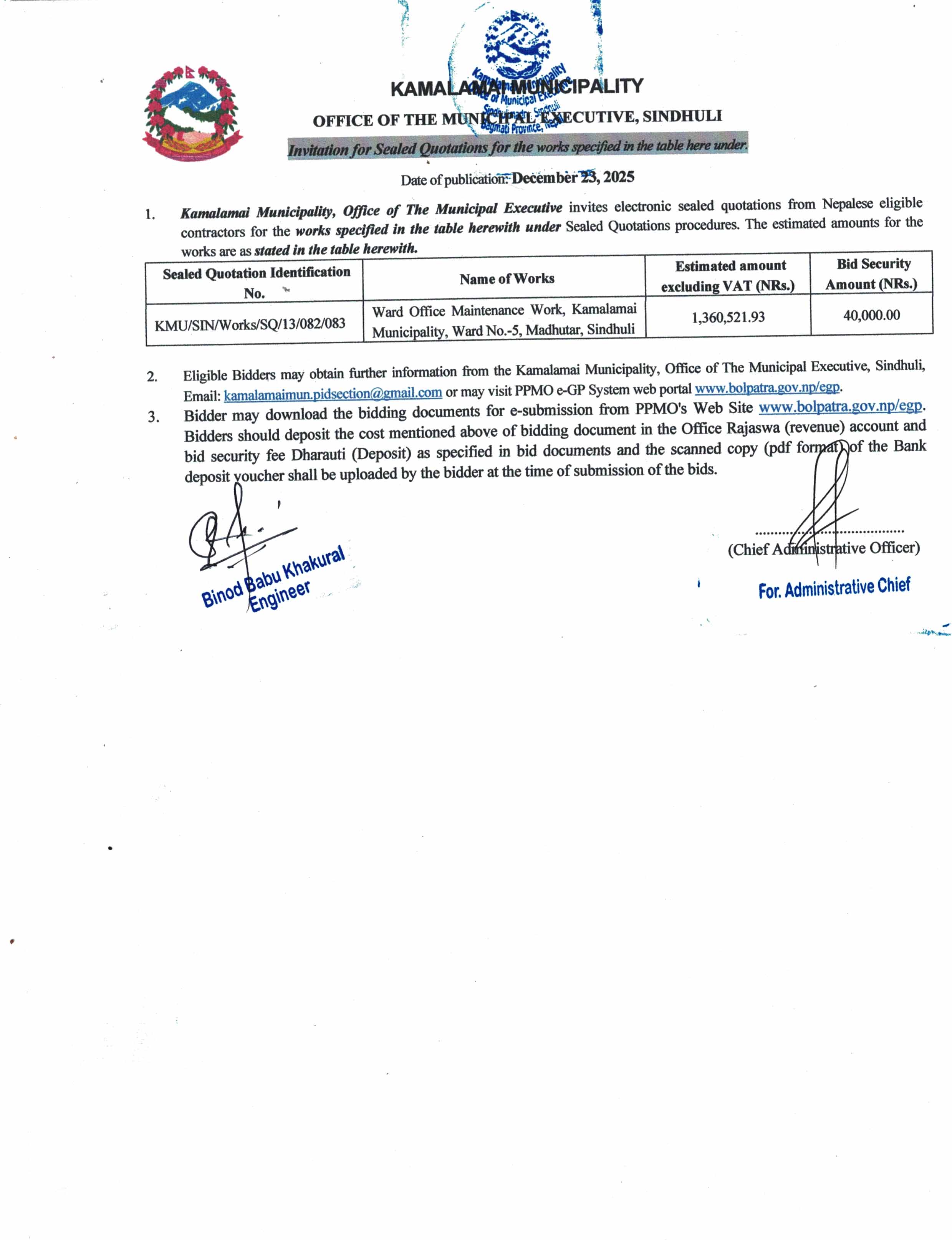 Invitiation for sealed Quotations for the words specified in the table here under .