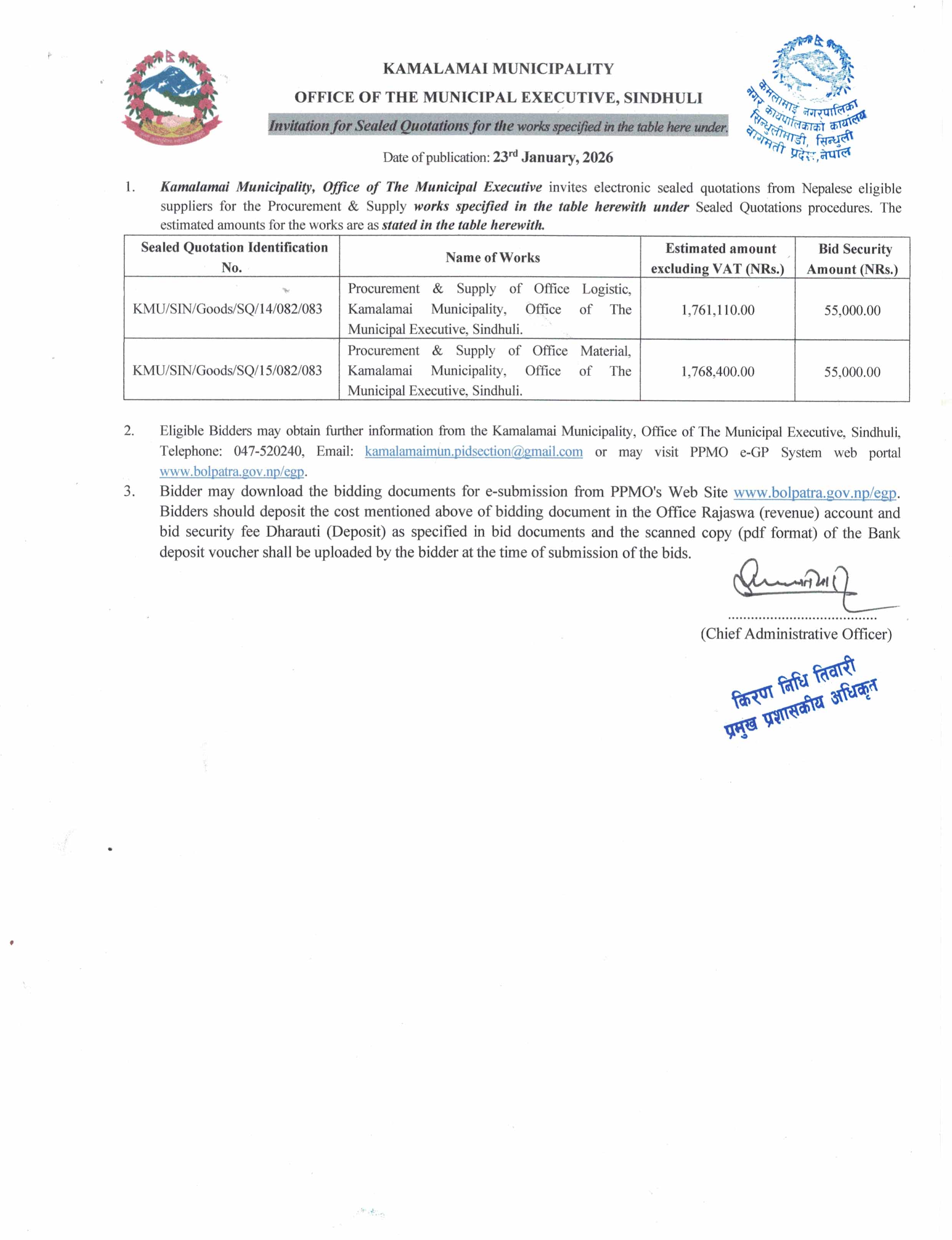 Invitiation for sealed Quotations for the words specified in the table here under .