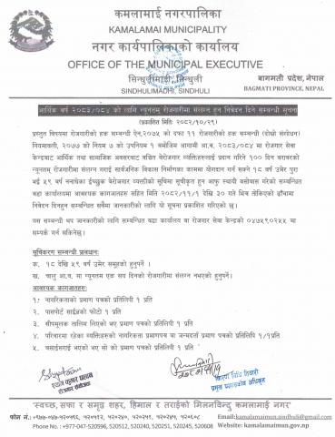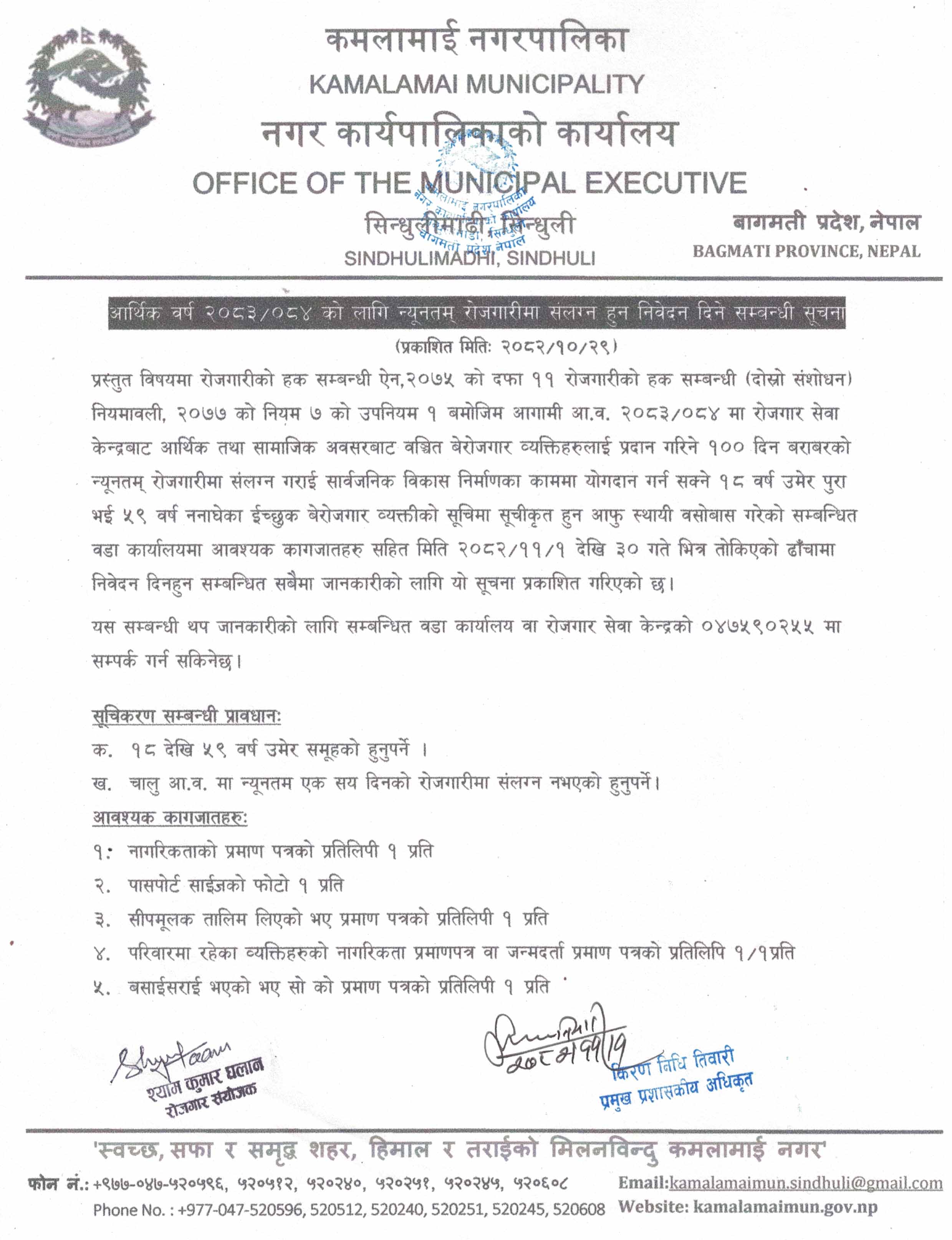आर्थिक वर्ष २०८३/०८४ को लागि न्यूनतम् रोजगारीमा संलग्न हुन निवेदन दिने सम्बन्धी सूचना