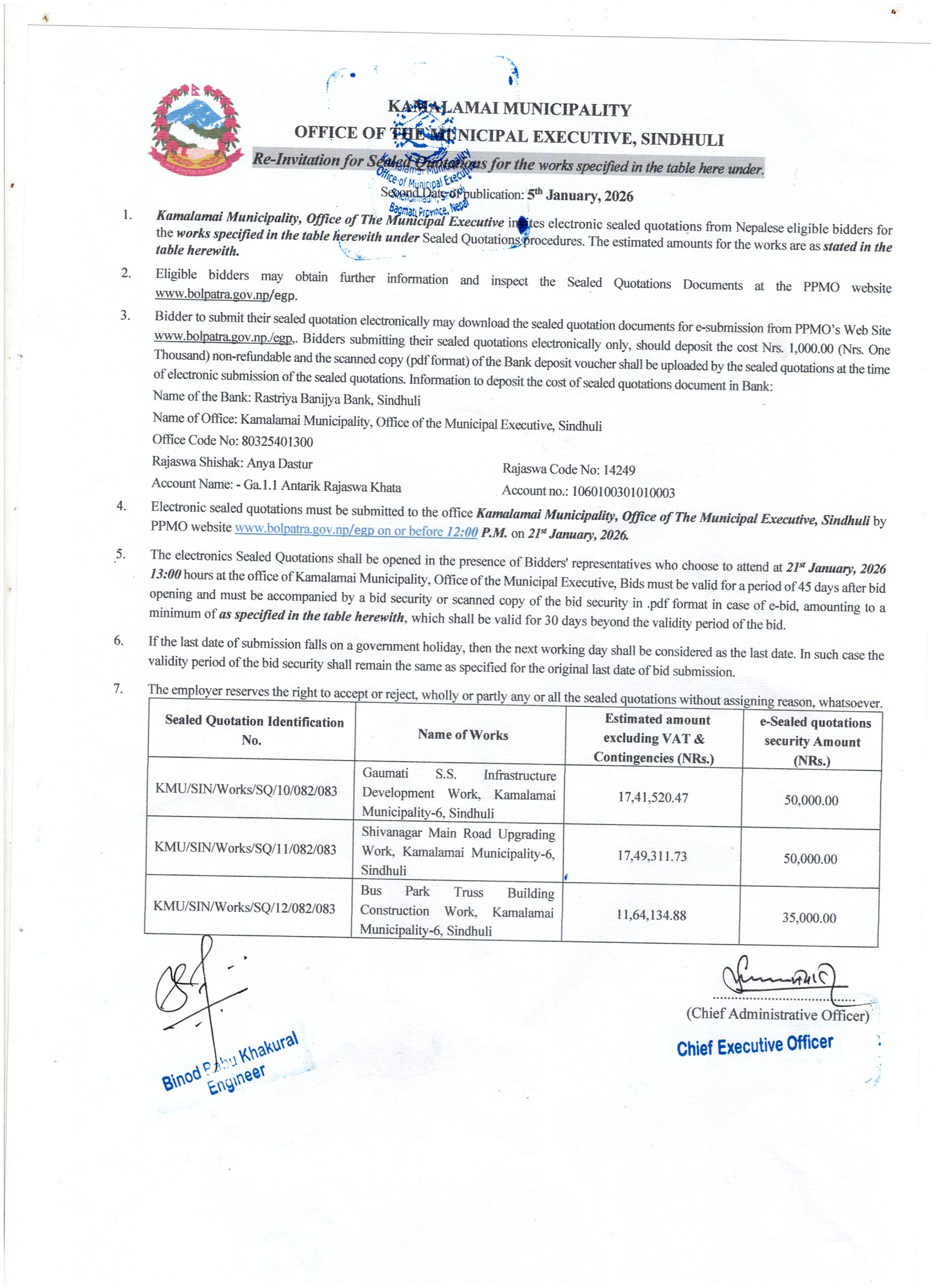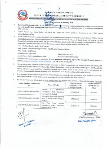 Re-Invitation for sealed Quotations for the works specified in the table here under .
